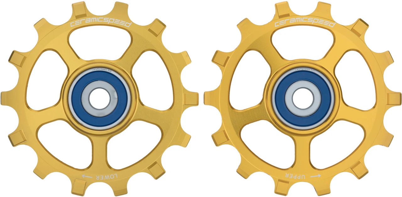 Numéros du fabricant :black:103346gold:103347Contenu :1 x galet de tension CeramicSpeed SRAM Eagle Coated1 x galet de guidage CeramicSpeed SRAM Eagle Coated1 x flacon compte-gouttes d’huile CeramicSpeed 15 ml1 x seringue de 5 ml de graisse CeramicSpeed1 x autocollant