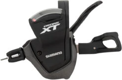 Le levier de vitesses Shimano XT SL-M8000 est fixé au guidon par un collier de serrage et dispose de leviers ergonomiques et structurés différemment. Par rapport au modèle précédent, le mécanisme Vivid Index, qui a toujours été connu pour ses opérations de commutation robustes, a été encore optimisé. Le XT Shifter gauche peut être utilisé aussi bien pour les transmissions 2×11 vitesses que pour les transmissions 3×11 vitesses sans convertisseur de mode. Le modèle est livré avec un câble intérieur Optislick, qui réduit de 20% l’effort nécessaire pour changer de vitesse.